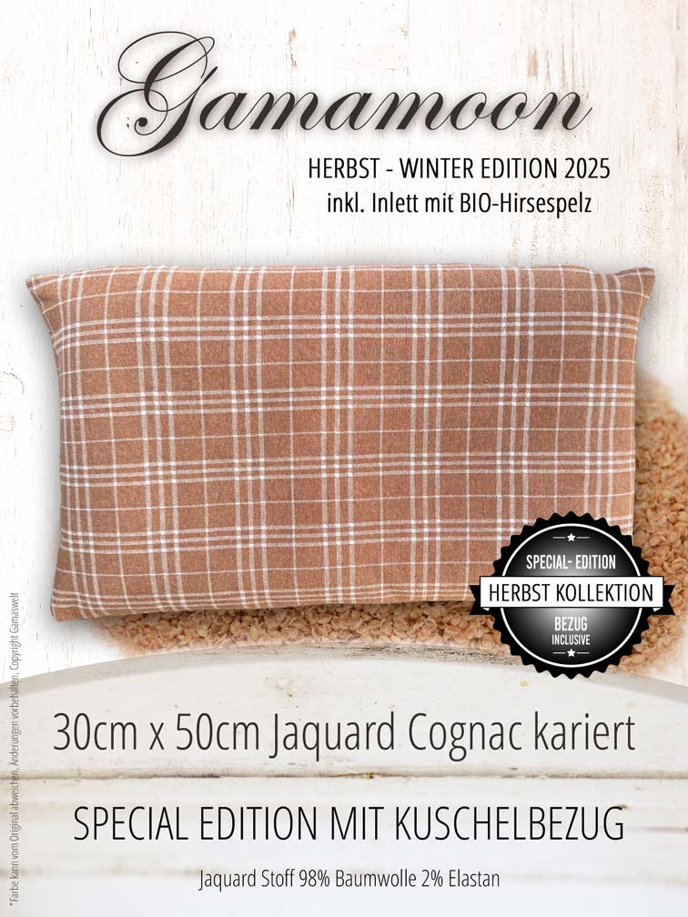 PREMIUM 30cm x 50cm HIRSESPELZKISSEN MIT KUSCHEL BEZUG, JAQUARD HERBST-WINTER KOLLEKTION 2025