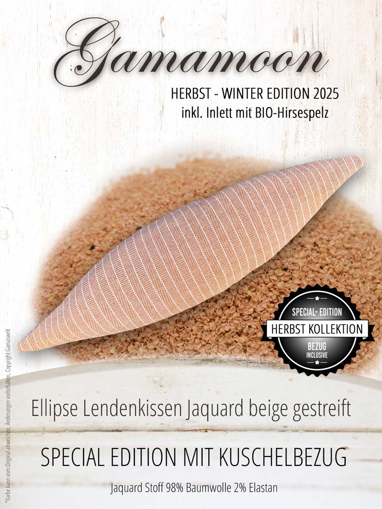 PREMIUM ELLIPSE HIRSESPELZKISSEN MIT KUSCHEL BEZUG, JAQUARD HERBST-WINTER KOLLEKTION 2025