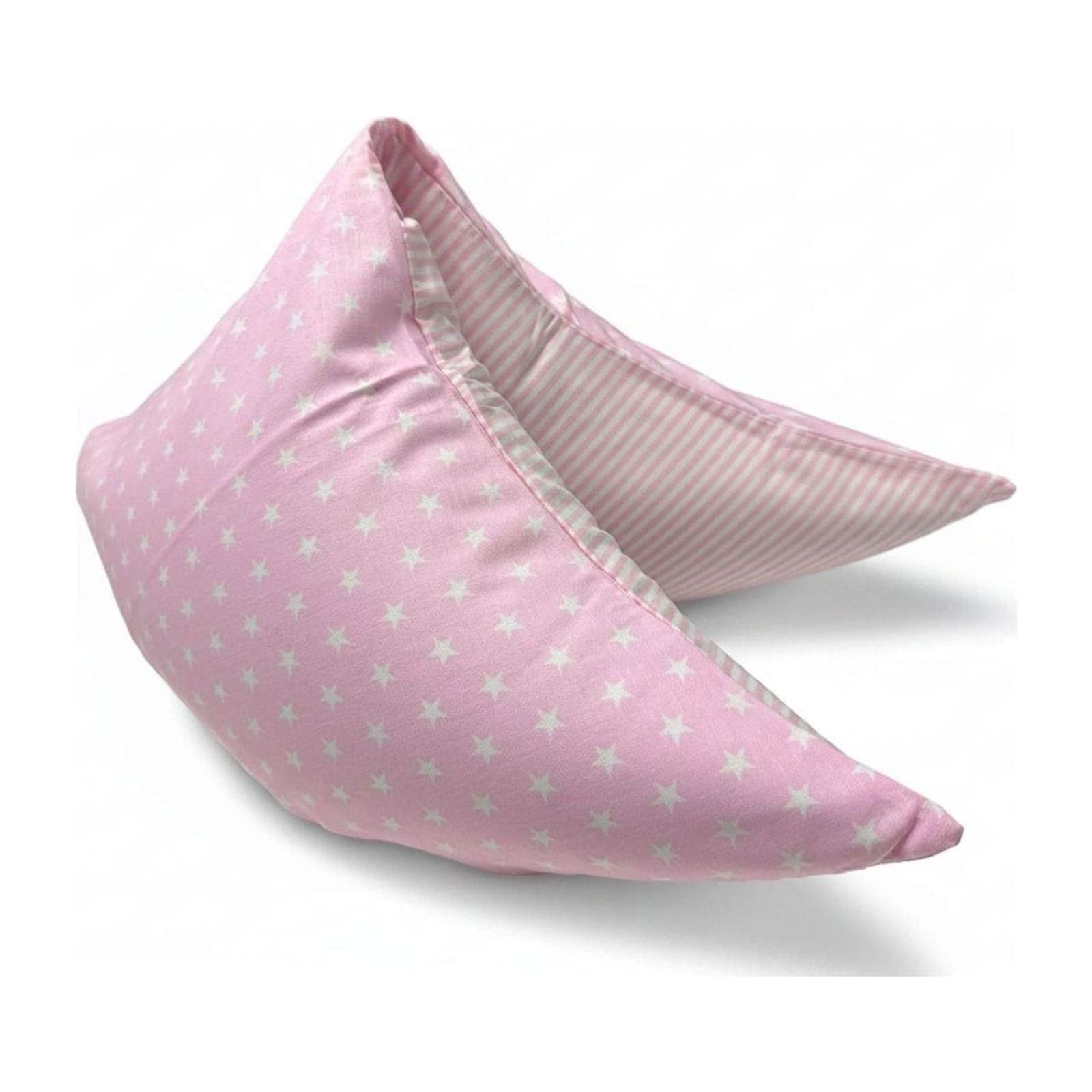Ein weiches Halbmondkissen in zartem Rosé mit feinen weißen Sternen – ein Klassiker, der sich in jedes Schlafzimmer einfügt und dabei sanft zur Ruhe einlädt. Das Muster schafft eine beruhigende Atmosphäre ohne dabei zu verspielt zu wirken.