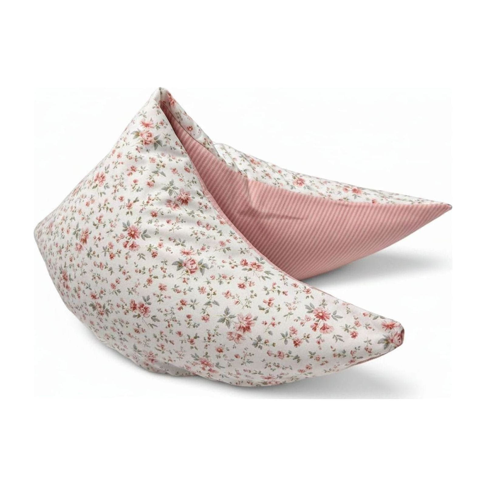 Das Halbmond-Kissen kommt mit einem hochwertigen Bezug aus Westfalenstoff in Baumwolle, gestaltet mit dem Streublümchen-Muster in Rosé. Die Rückseite ist bewusst abweichend gestaltet. Im Inneren befindet sich eine Füllung aus Bio-Hirsespelzen mit etwa 90% Kieselsäure, die in einem eingenähten Inlett sitzt. Der Bezug lässt sich abnehmen und bei 40° waschen, das Inlett bleibt ungewaschen.