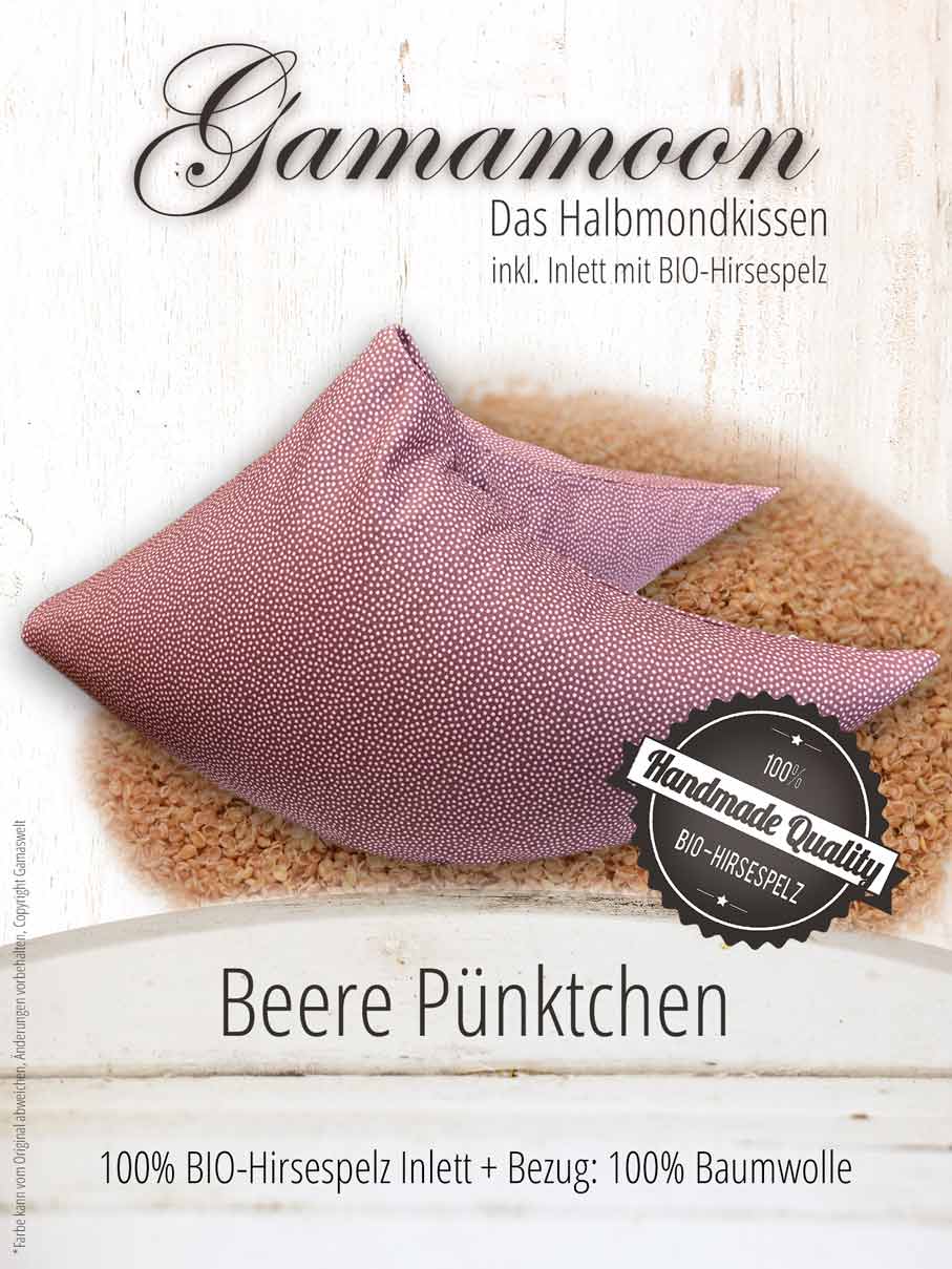 Gamamoon Nackenkissen / Halbmondkissen in der Bezugsvariante Beere Pünktchen.