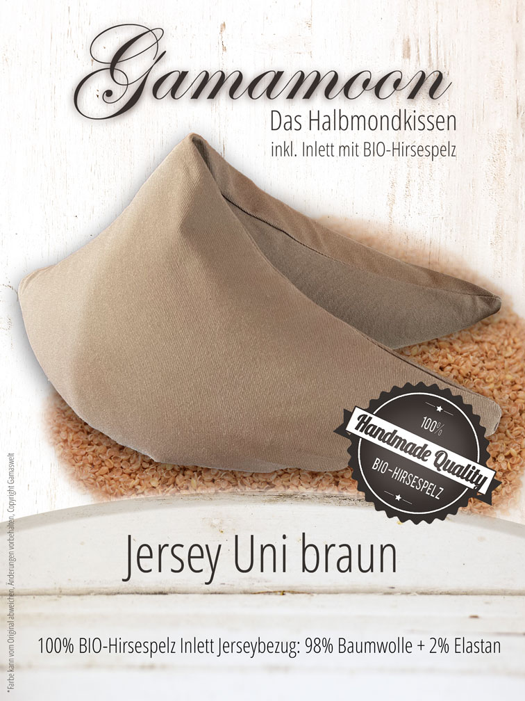 Gamamoon Nackenkissen / Halbmondkissen in der Bezugsvariante Jersey Uni braun.