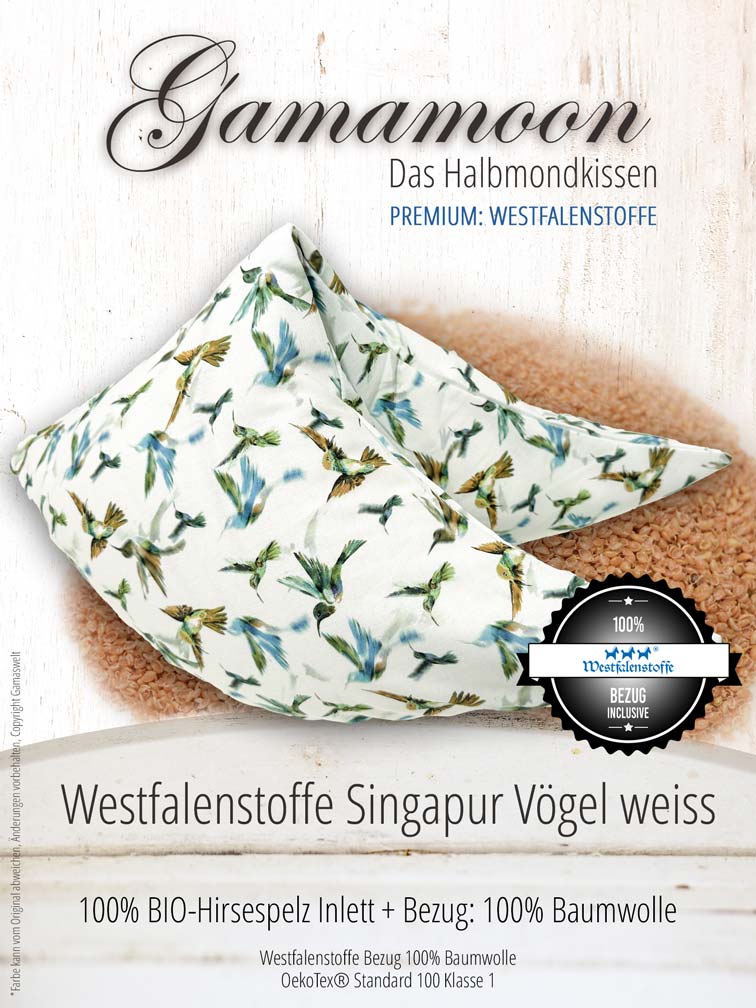 Vorderseite und Rückseite: 100% Westfalenstoffe Muster: Singapur Vögel weiss