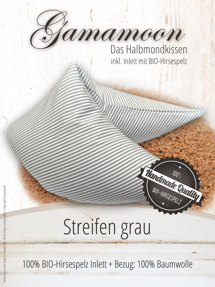 Gamamoon Streifen grau, Bio Hirsespelzkissen mit Bezug aus Baumwolle