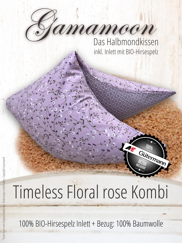 Gamamoon Nackenkissen / Halbmondkissen in der Bezugsvariante Timeless Floral rose Kombi.