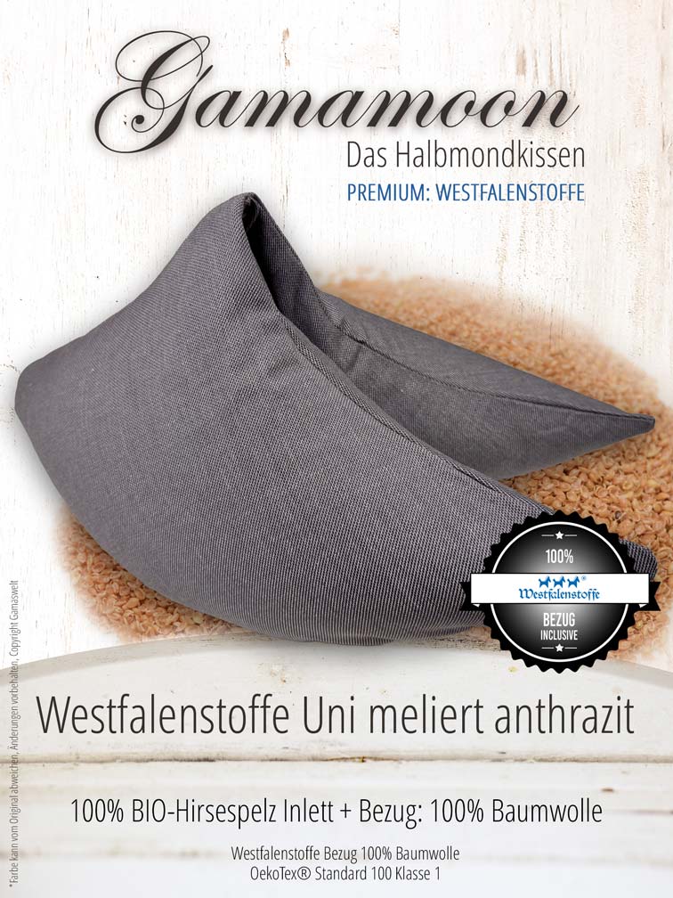 Gamamoon Uni meliert anthrazit, Bio Hirsespelzkissen mit Bezug aus premium Westfalenstoffe