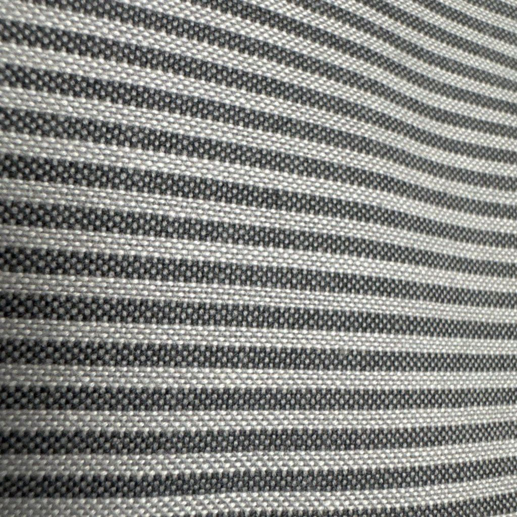 Das Halbmond-Kissen hat einen Bezug aus hochwertiger Baumwolle (Westfalenstoff) mit dem eleganten Streifen-Muster in Grau; die Rückseite ist dezent gestreift gestaltet. Die Füllung besteht aus feinen Bio-Hirsespelzen mit etwa 90% Kieselsäure, die in einem Inlett eingenäht sind. Der Bezug ist bei 40° waschbar und abnehmbar; das Inlett selbst bleibt geschützt und wird nicht gewaschen.